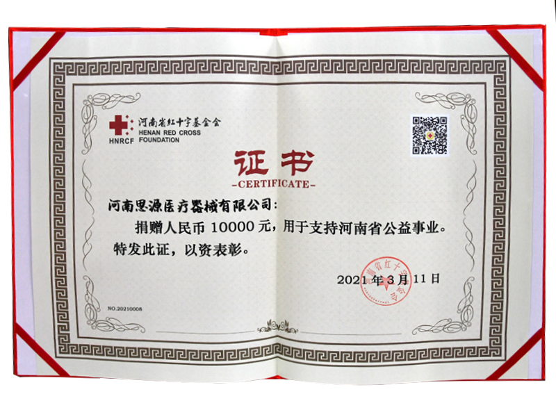 河南省紅十字會捐贈證書